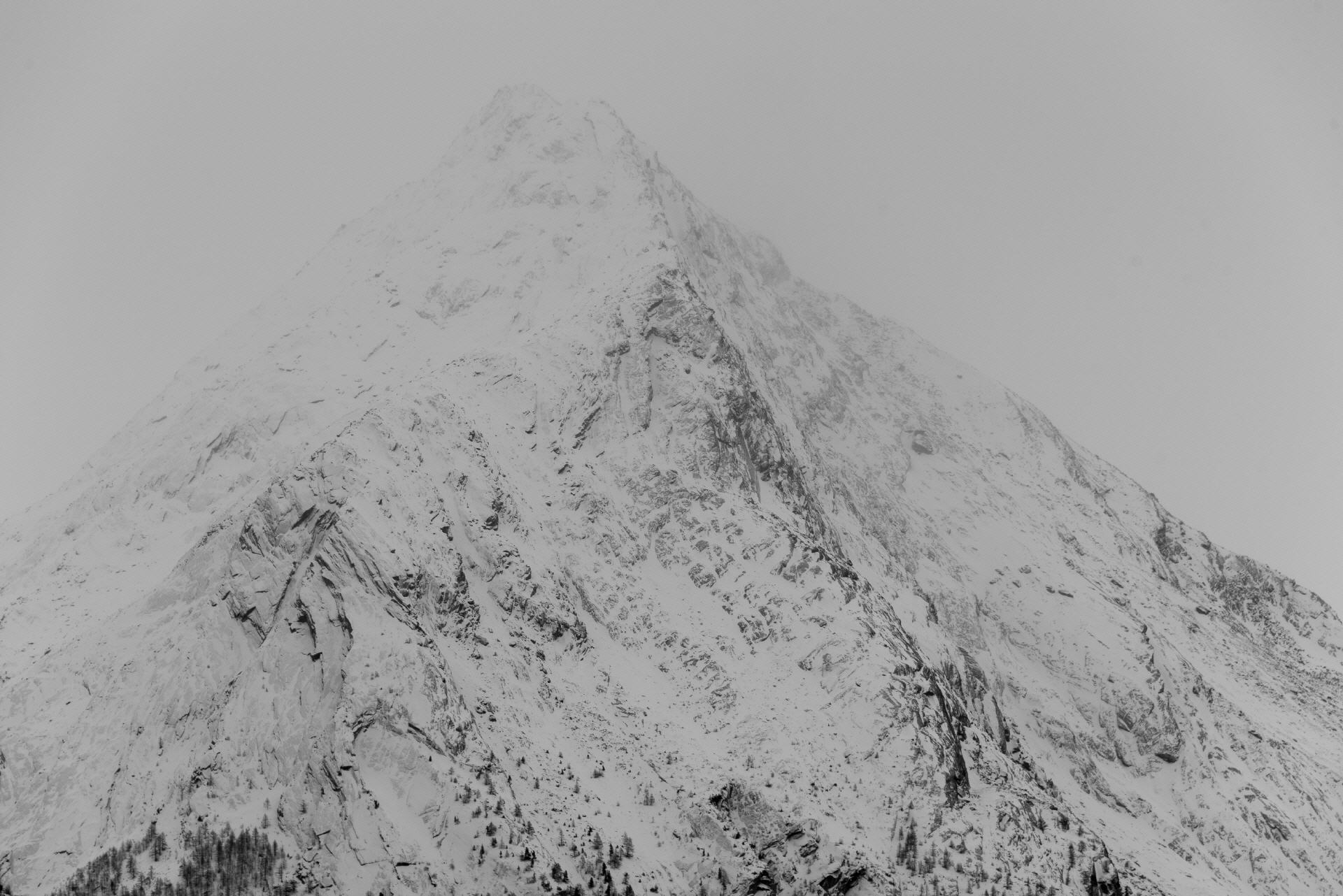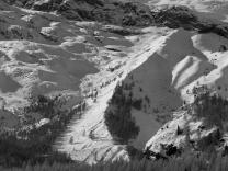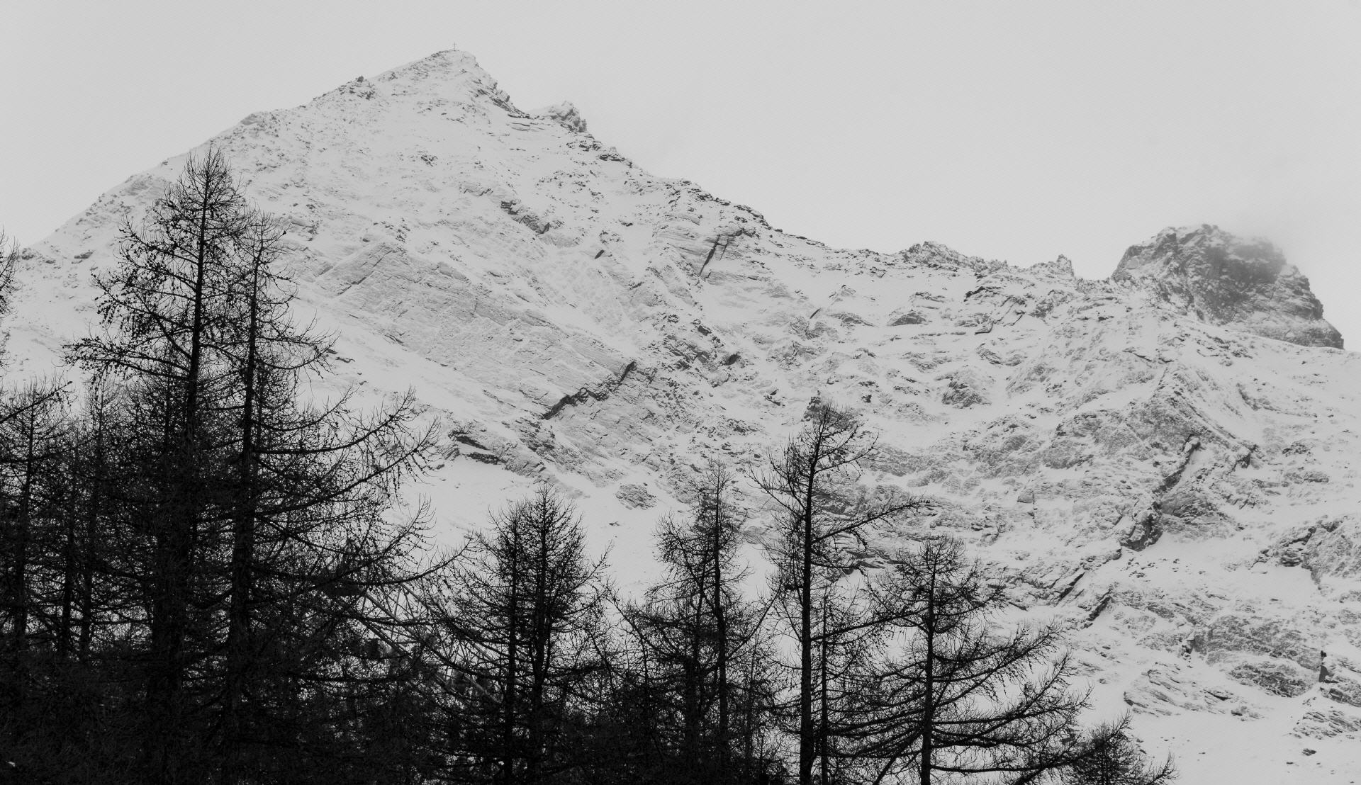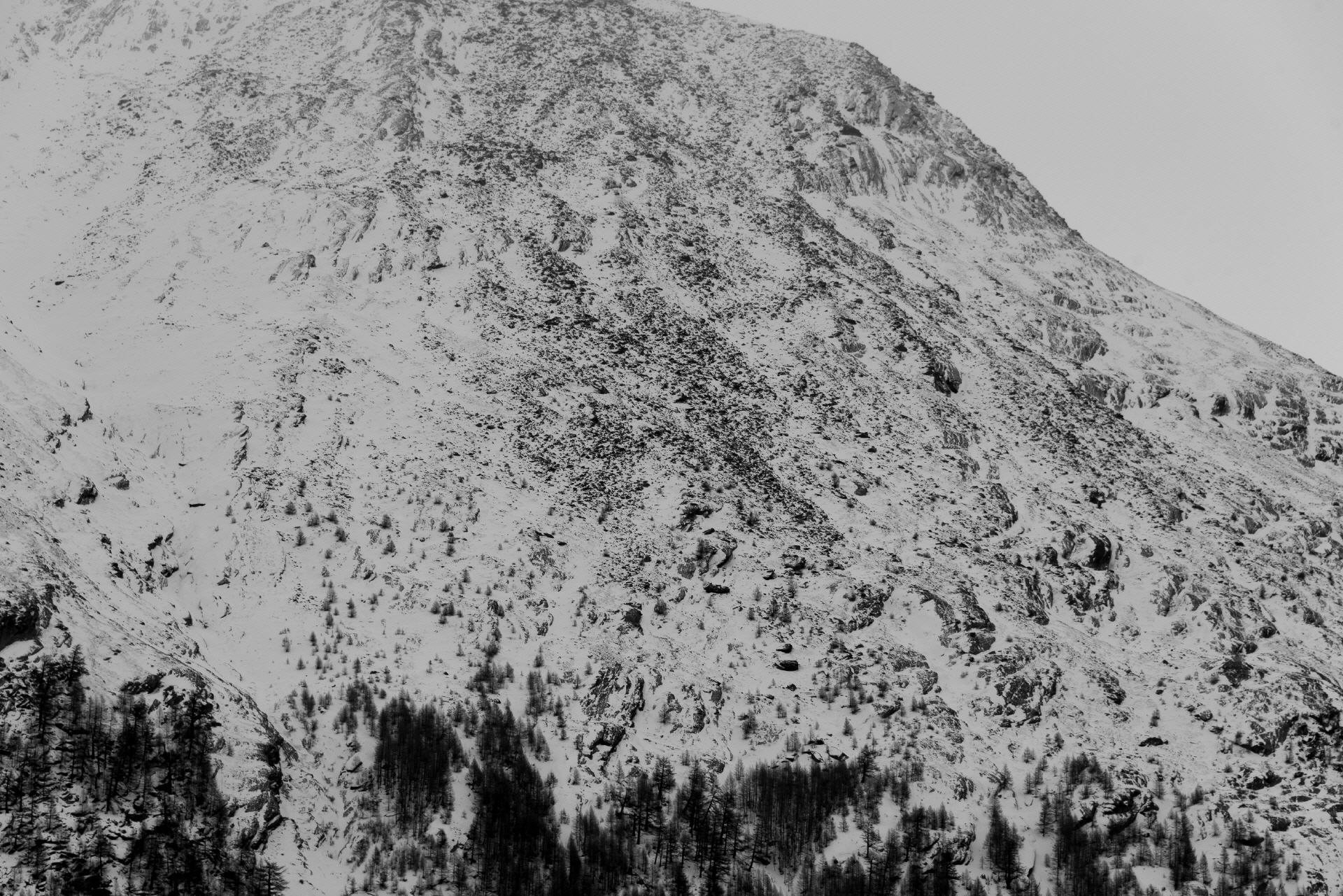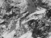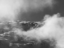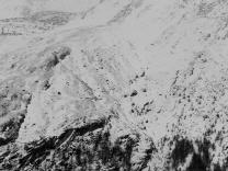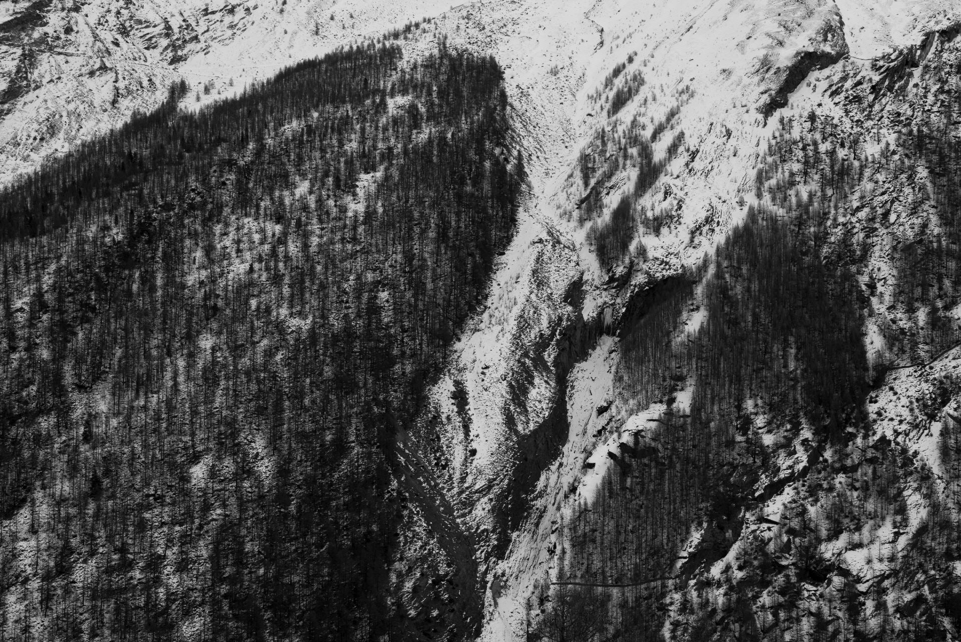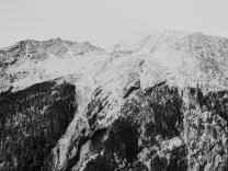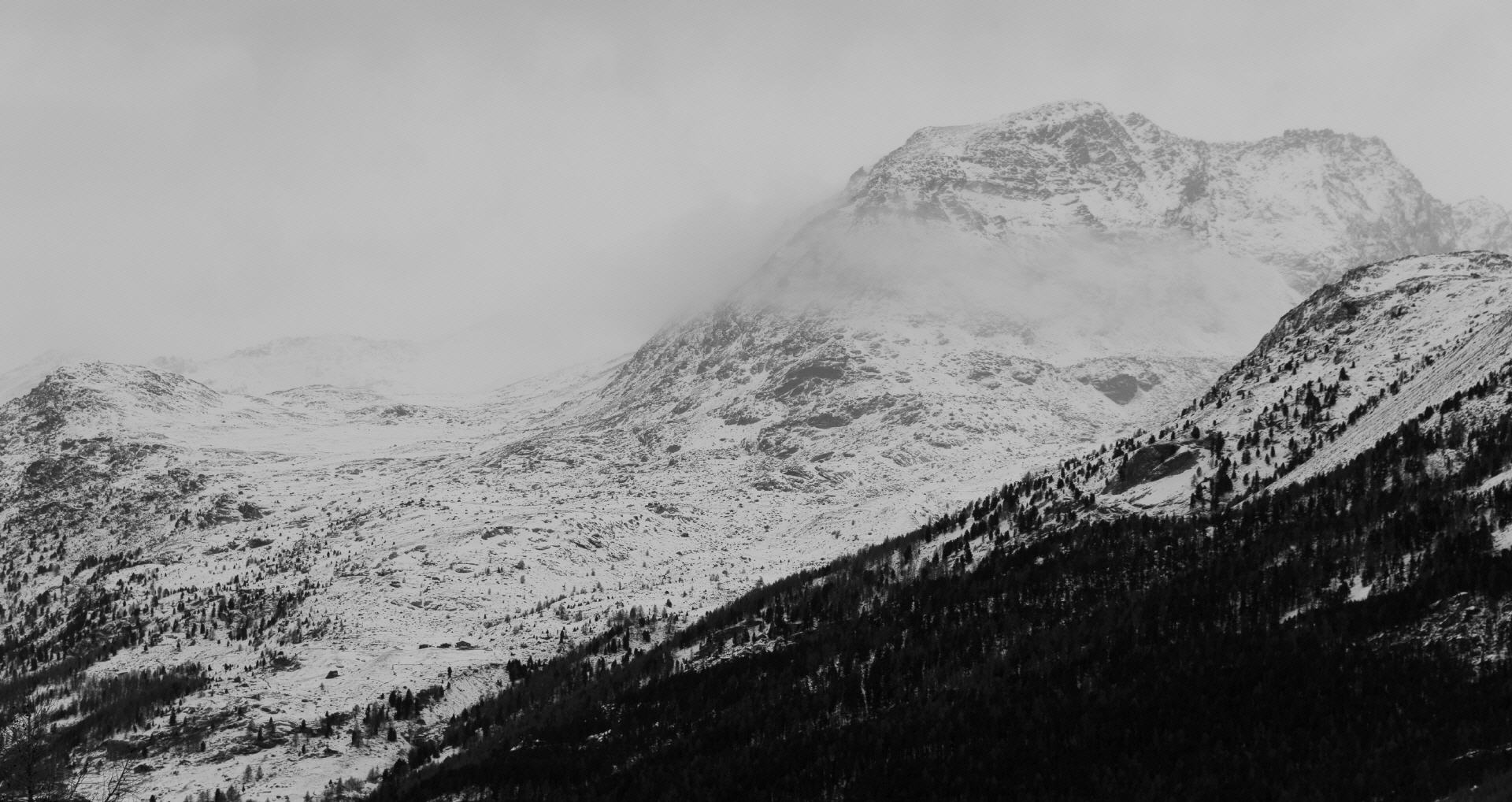 Die Bilder der ersten Serie entstanden am zweiten Tag meines 3-tägigen Aufenthalts in Saas-Fee. Das schwache Licht und der spärliche Schnee sorgten für eine sehr graphische Stimmung. Wunderbar für schwarz/weiss: Es gab sowieso kaum Farbe.