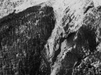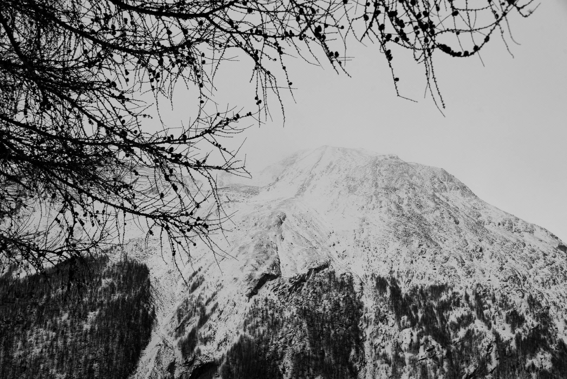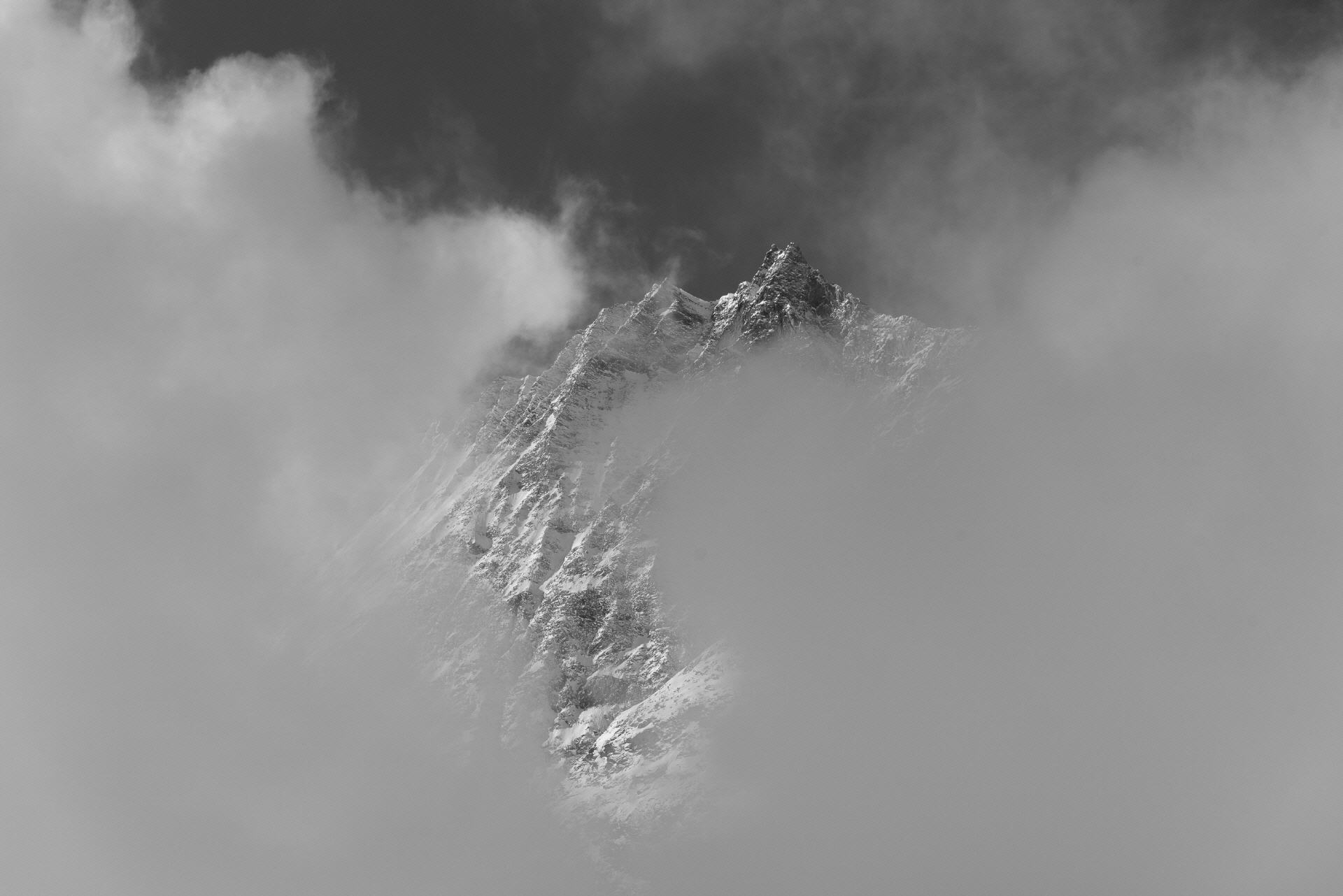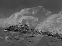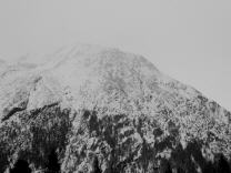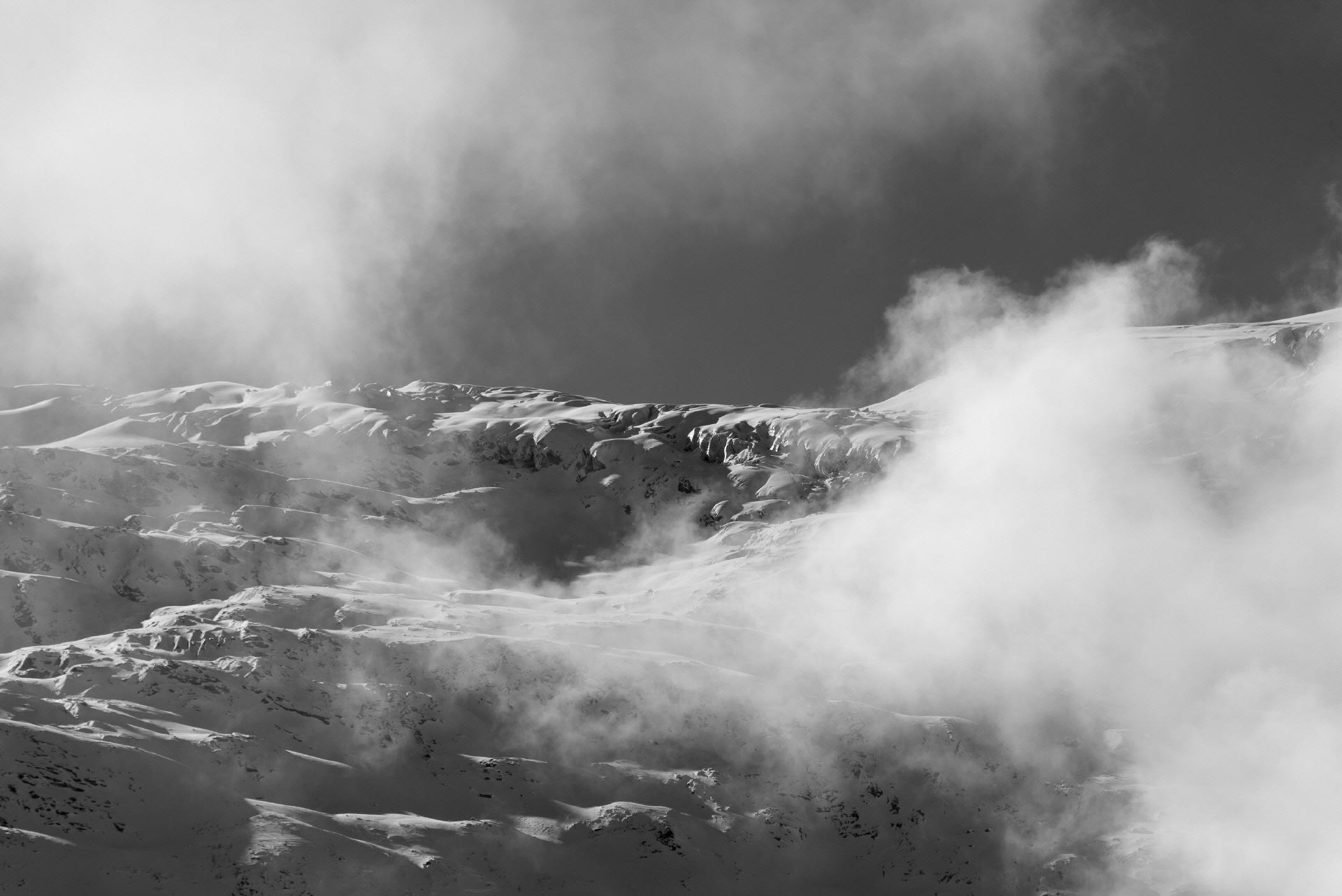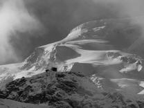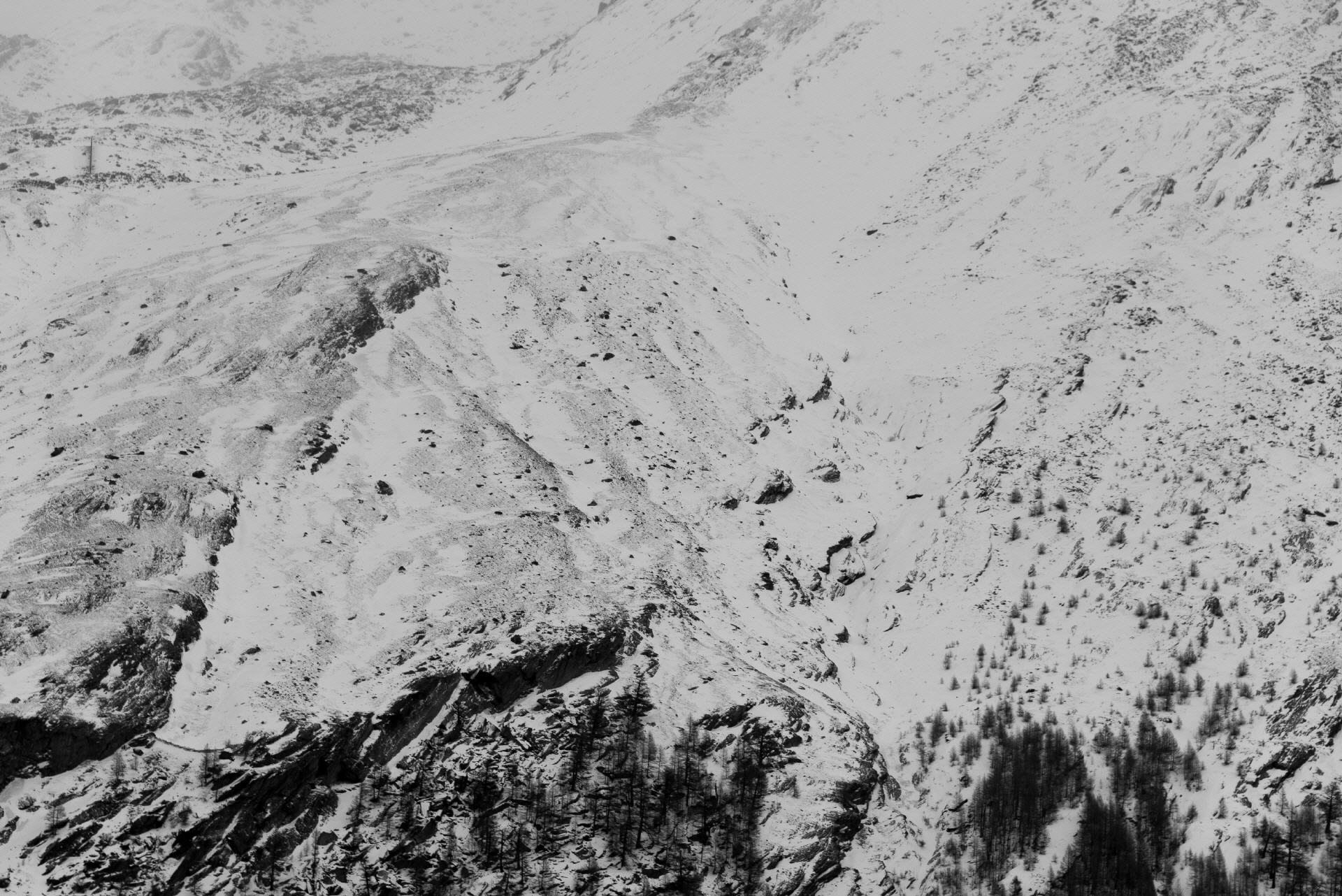 Die Bilder der ersten Serie entstanden am zweiten Tag meines 3-tägigen Aufenthalts in Saas-Fee. Das schwache Licht und der spärliche Schnee sorgten für eine sehr graphische Stimmung. Wunderbar für schwarz/weiss: Es gab sowieso kaum Farbe.