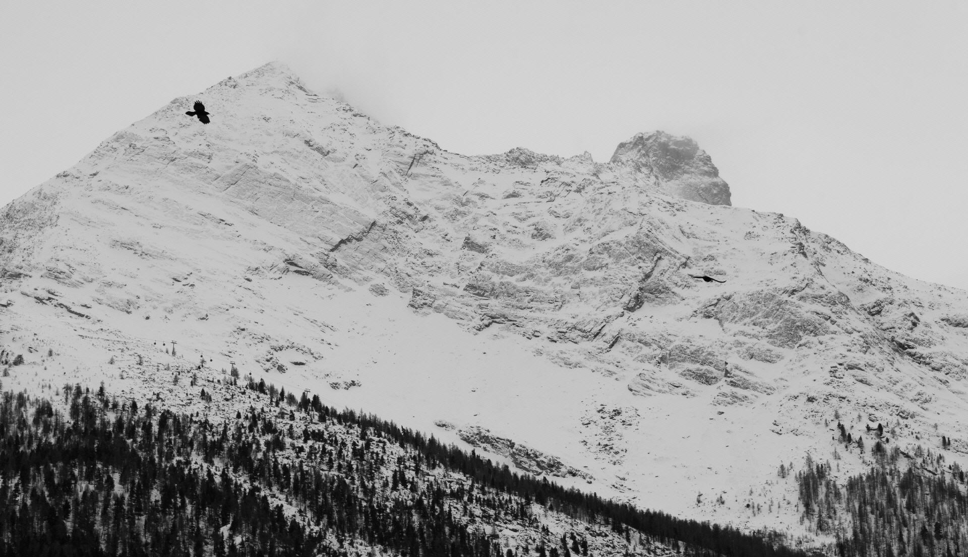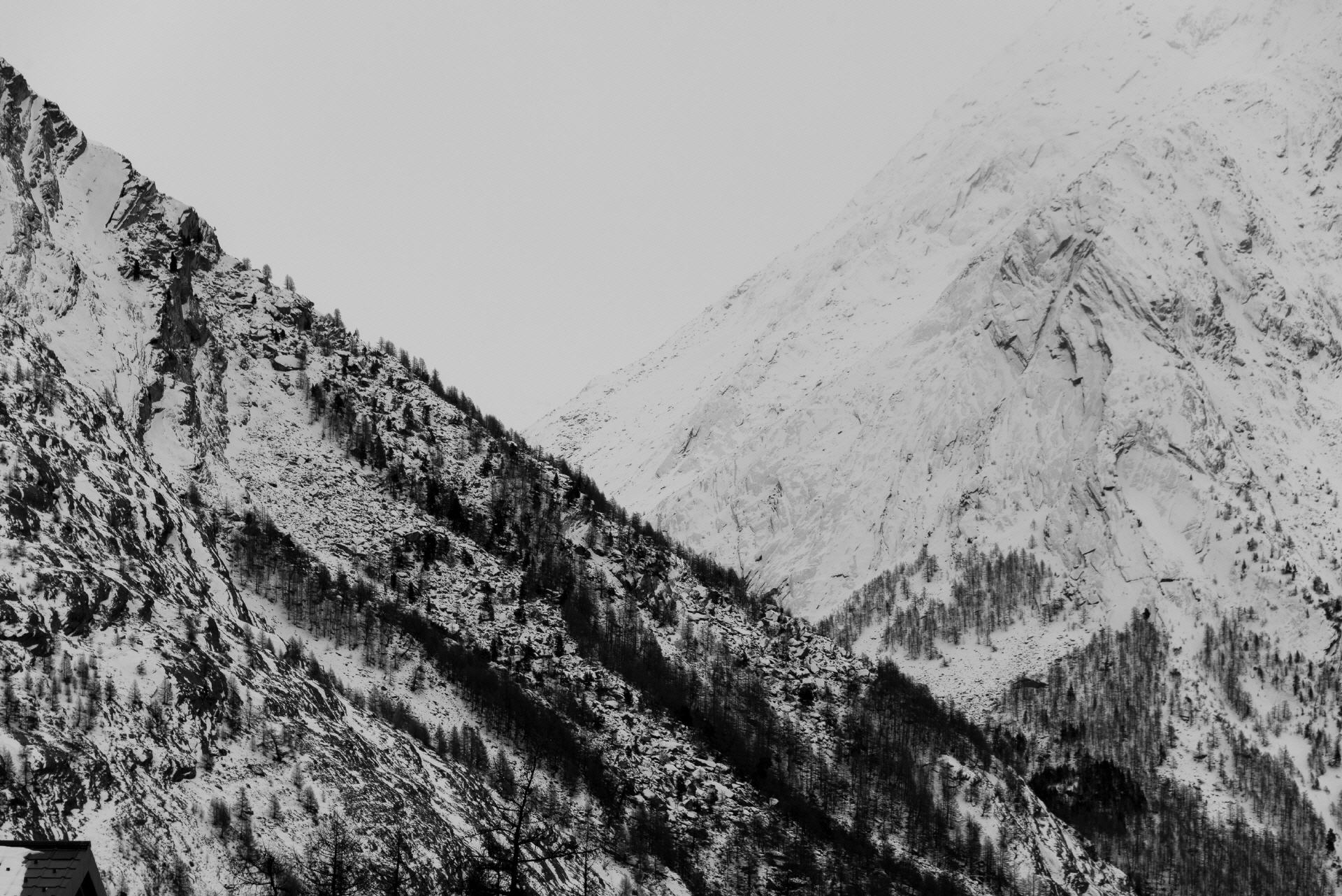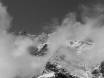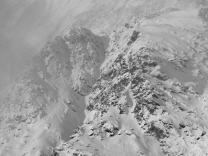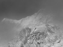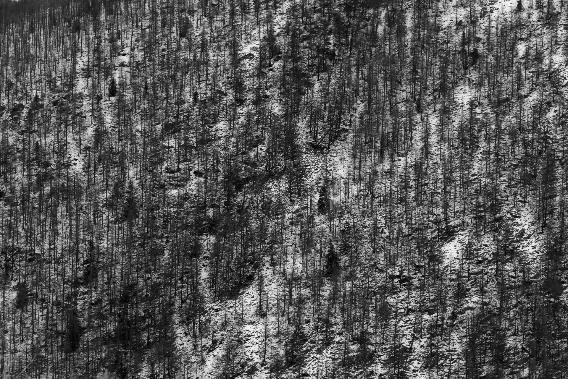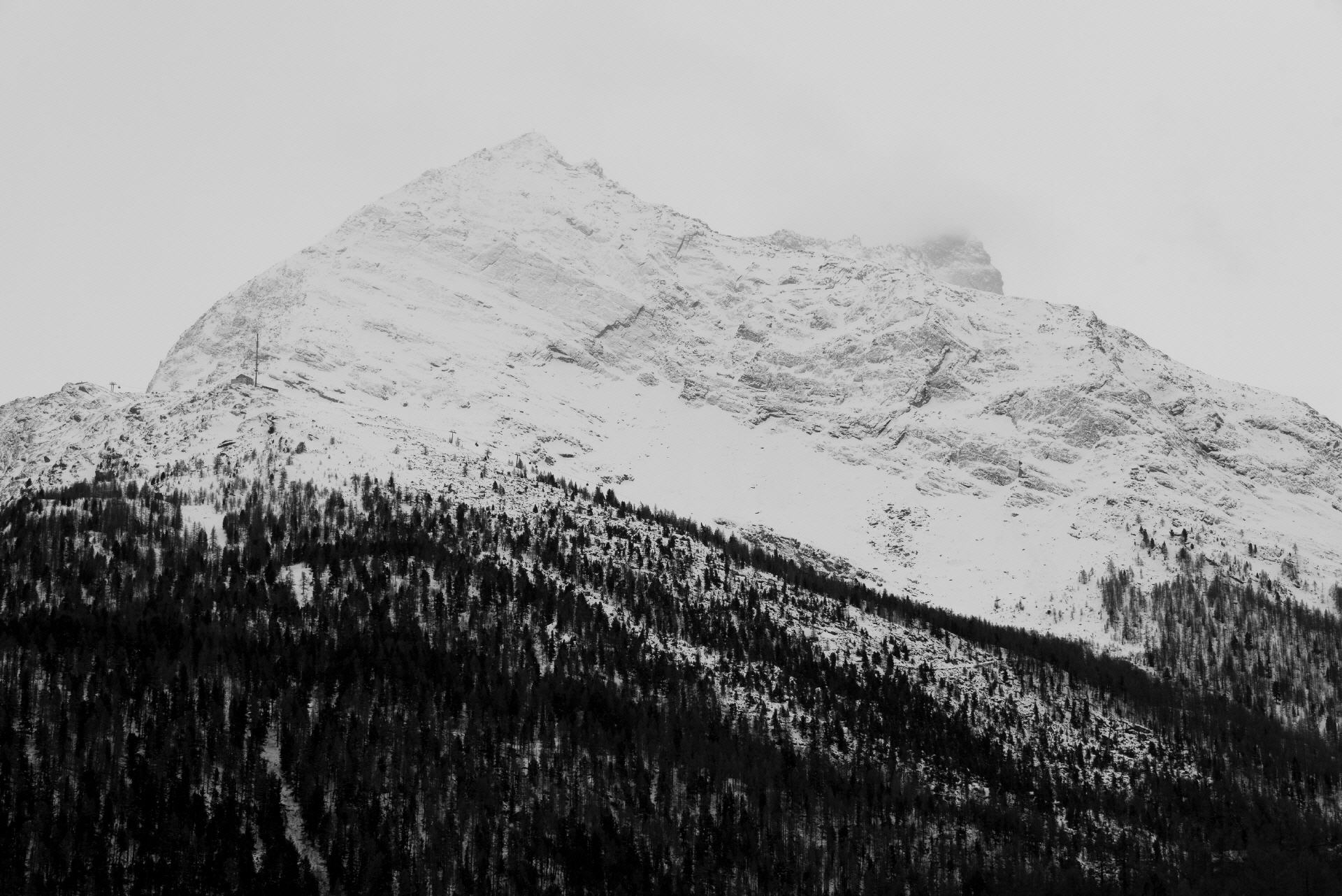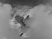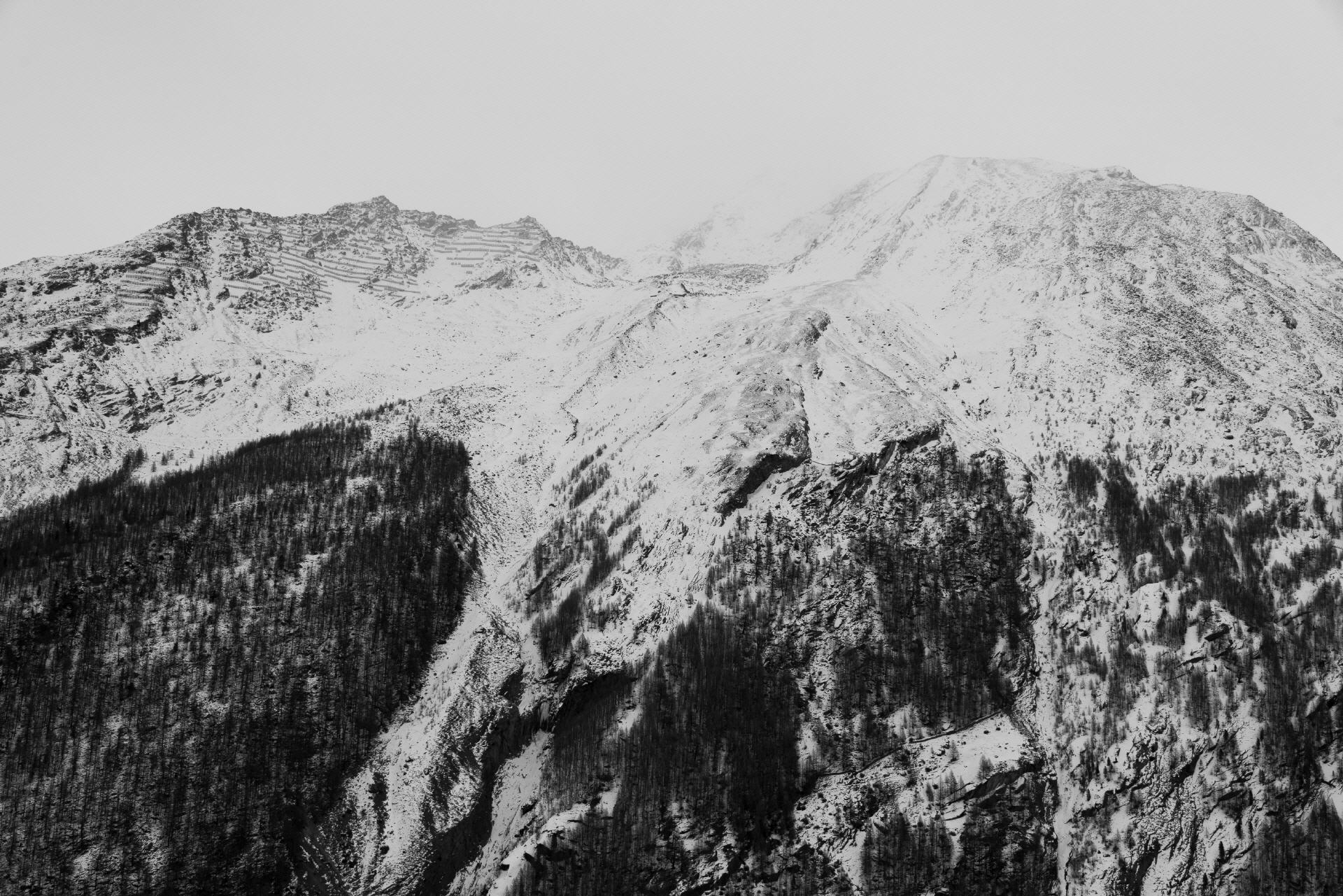 Die Bilder der ersten Serie entstanden am zweiten Tag meines 3-tägigen Aufenthalts in Saas-Fee. Das schwache Licht und der spärliche Schnee sorgten für eine sehr graphische Stimmung. Wunderbar für schwarz/weiss: Es gab sowieso kaum Farbe.