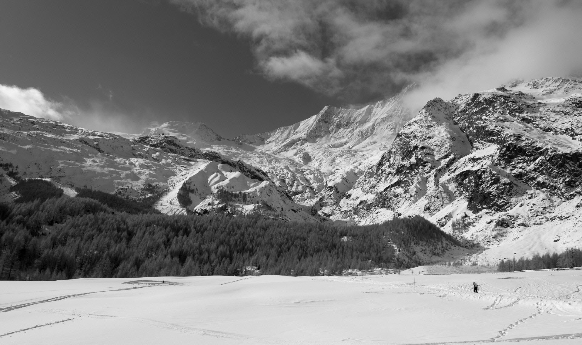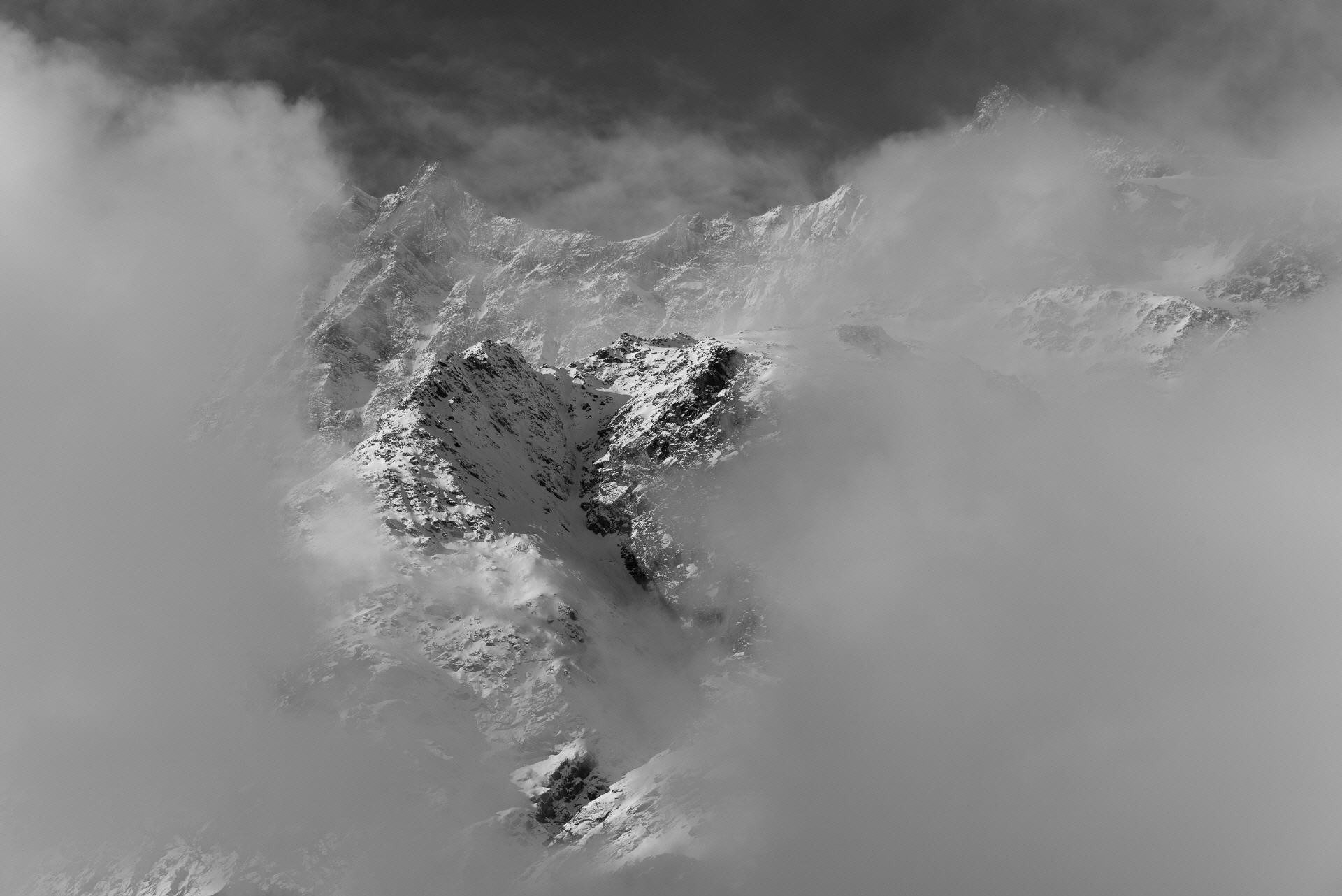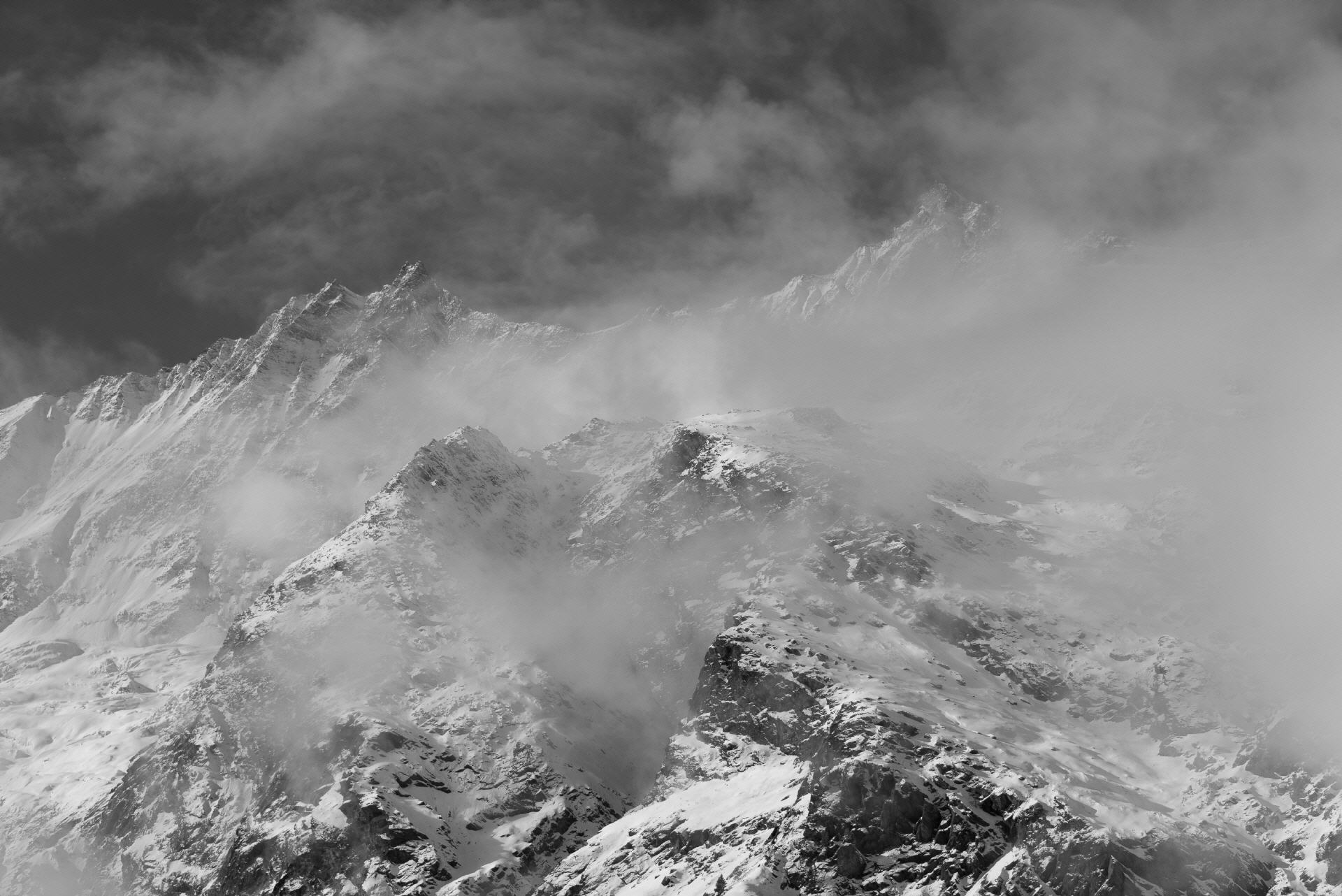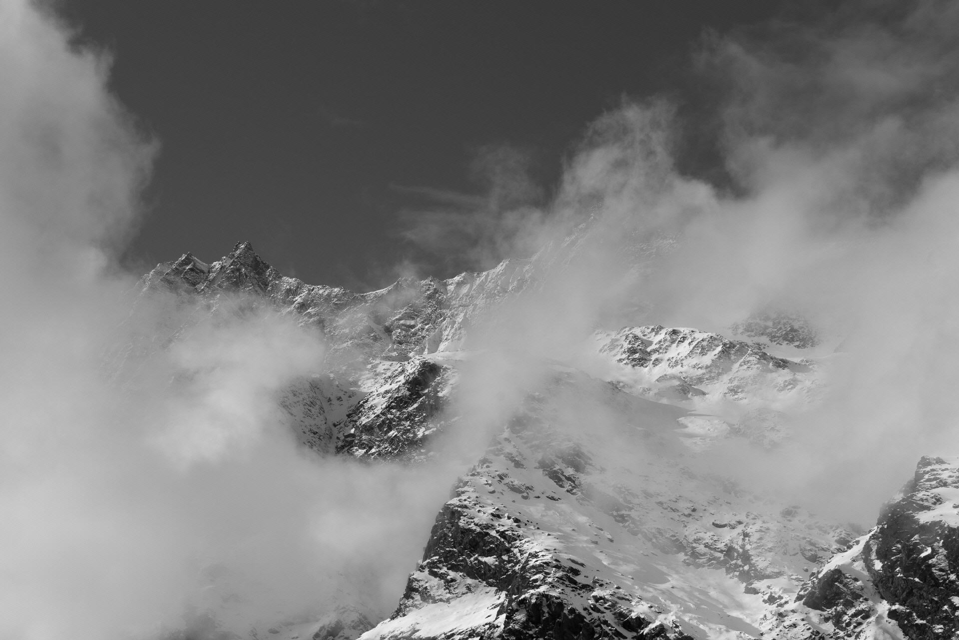 Im 2023 war ich auch in Saas-Fee. Schon damals präsentierte sich die Bergwelt in eindrücklicher Weise. Ob das dort oben einfach normal ist? Die Bilder aus dem Jahr 2023 beliess ich in Farbe. Aus diesem Grund habe ich mich in dieser Präsentation für schwarz/weiss entschieden. Hier geht's zu den Aufnahmen von 2023.