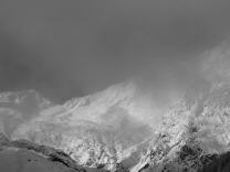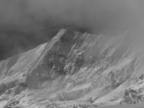 Am Tag drei präsentierte sich das Wetter ganz anders. Ein leichter Schneefall während der vorherigen Nacht verwandelte das Land in eine weisse Wunderwelt. Die Nebel spielten mit der Sonne und den Bergen. Wie im Kino konnte ich die Szenerie bewundern und immer wieder den Ausslöser der Kamera betätigen. Dazwischen mal reinzoomen, damit auch die Gletscherwelt zum Zug kommt.