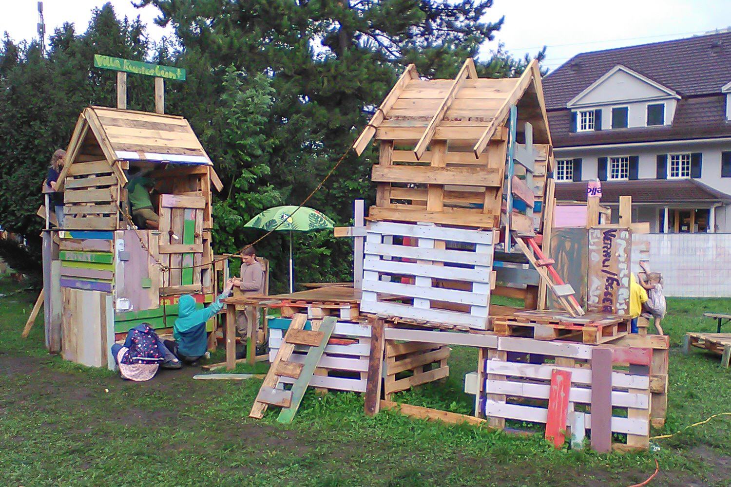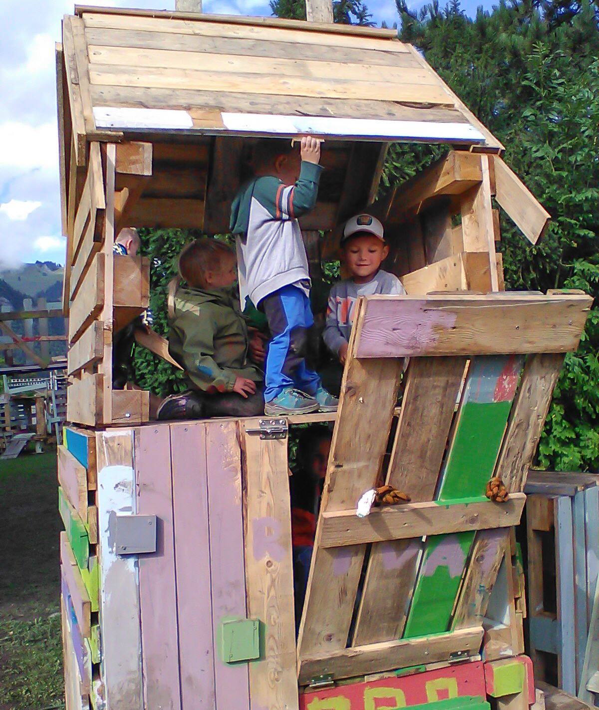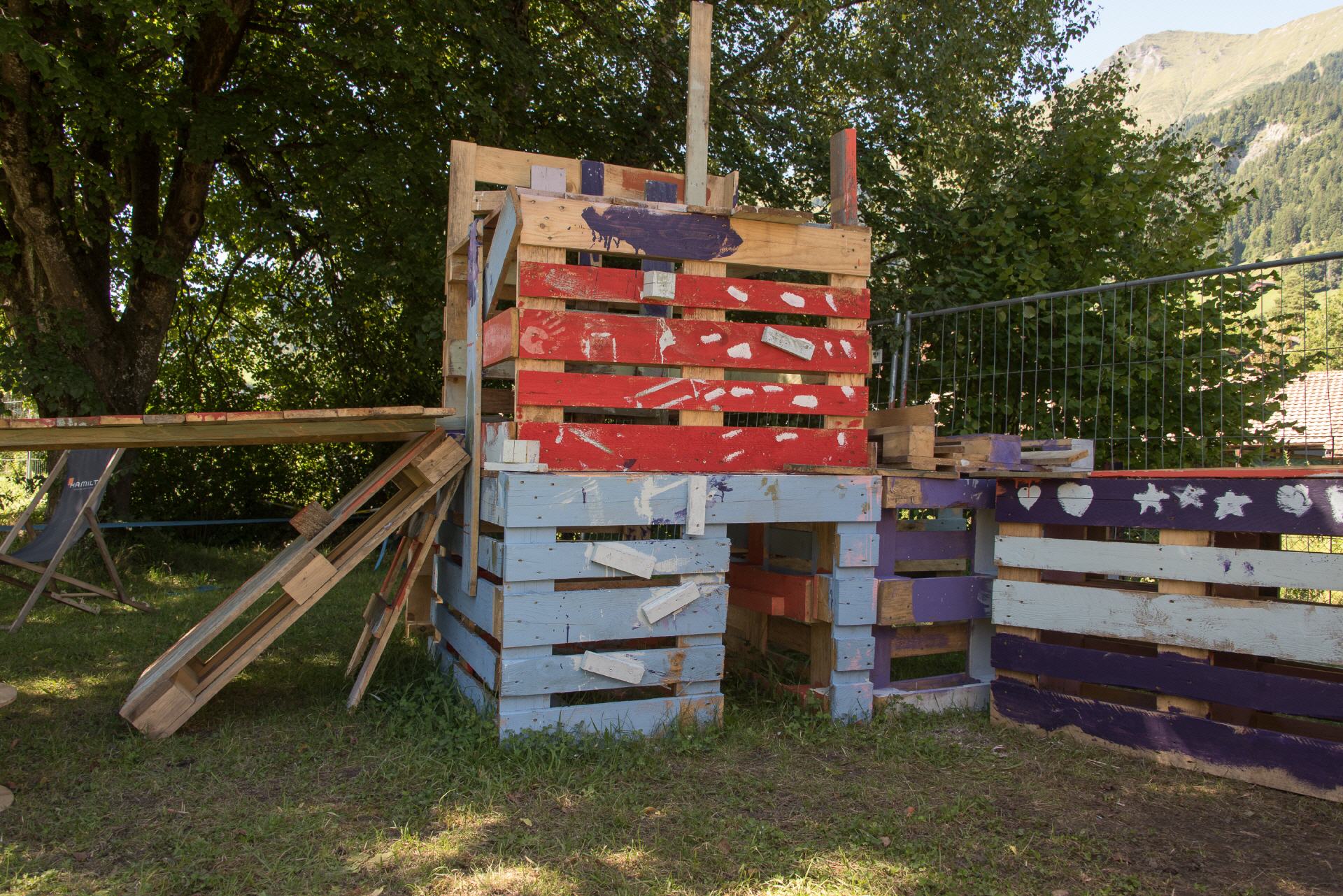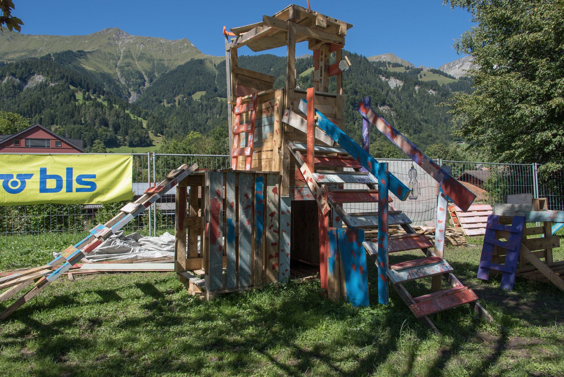 Seit 5 Jahren betreibt die OKJA Niesen (Offene Kinder- und JugendArbeit) während der Sommermonate eine Kinderbaustelle. Auf diesem Areal können Kinder kleine und grosse Häuser und sonstige 'Bauten' zusammenbauen. Teilweise sind aus den fantasiereichen Konstrukten wahre Festungen geworden. Mit Holz, Schrauben, Akkuschraubern und anderen Werkzeugen ausgerüstet, können die Kinder und erwachsenen Begleiter ihrer Fantasie freien Lauf lassen. Einzig die Sicherheit der Anwesenden entscheidet über die Machbarkeit. Mit Pinsel und Farbe wird den Werken der finale Touch verabreicht.