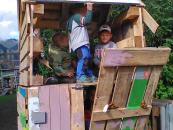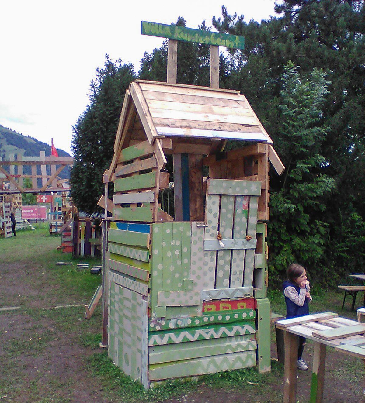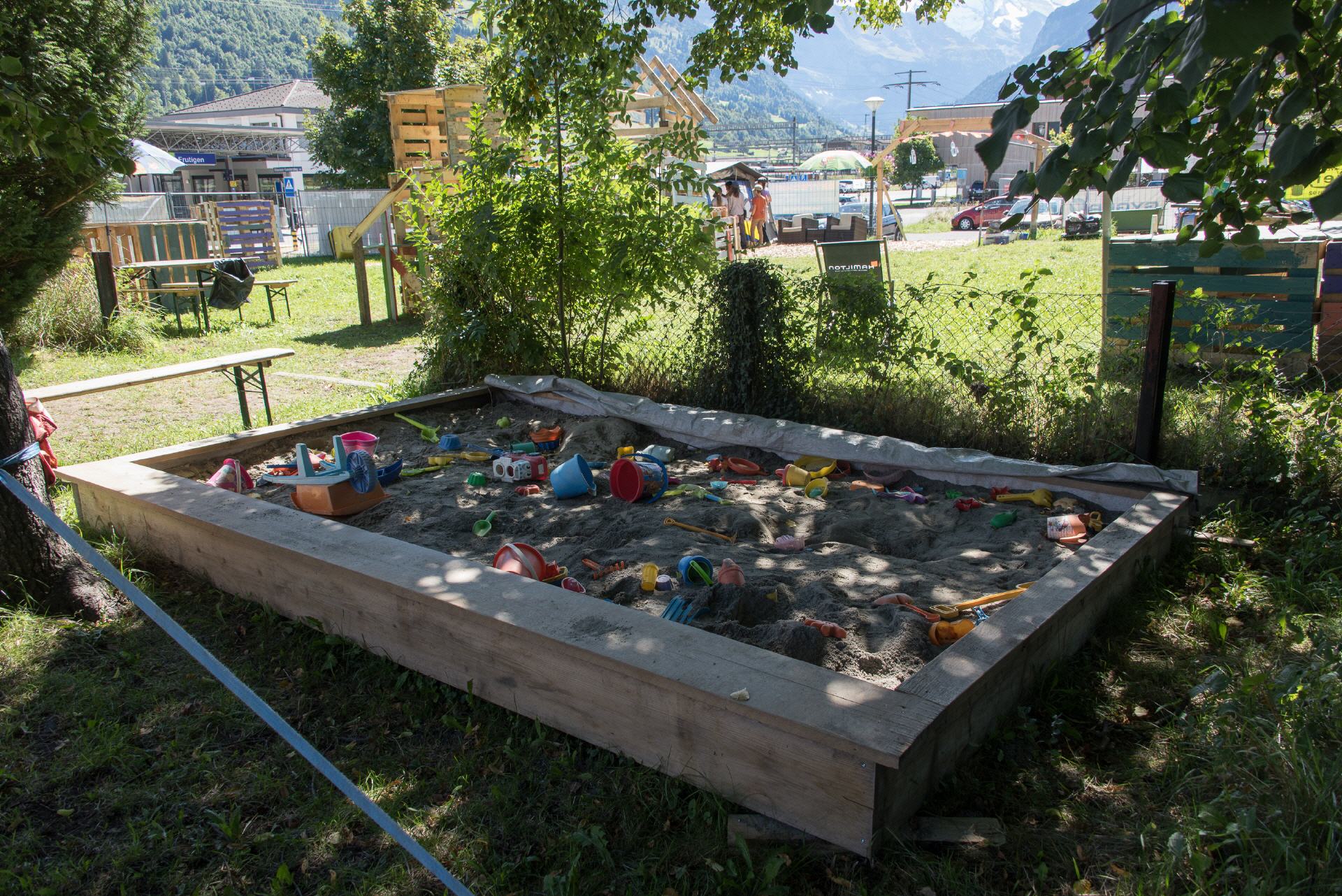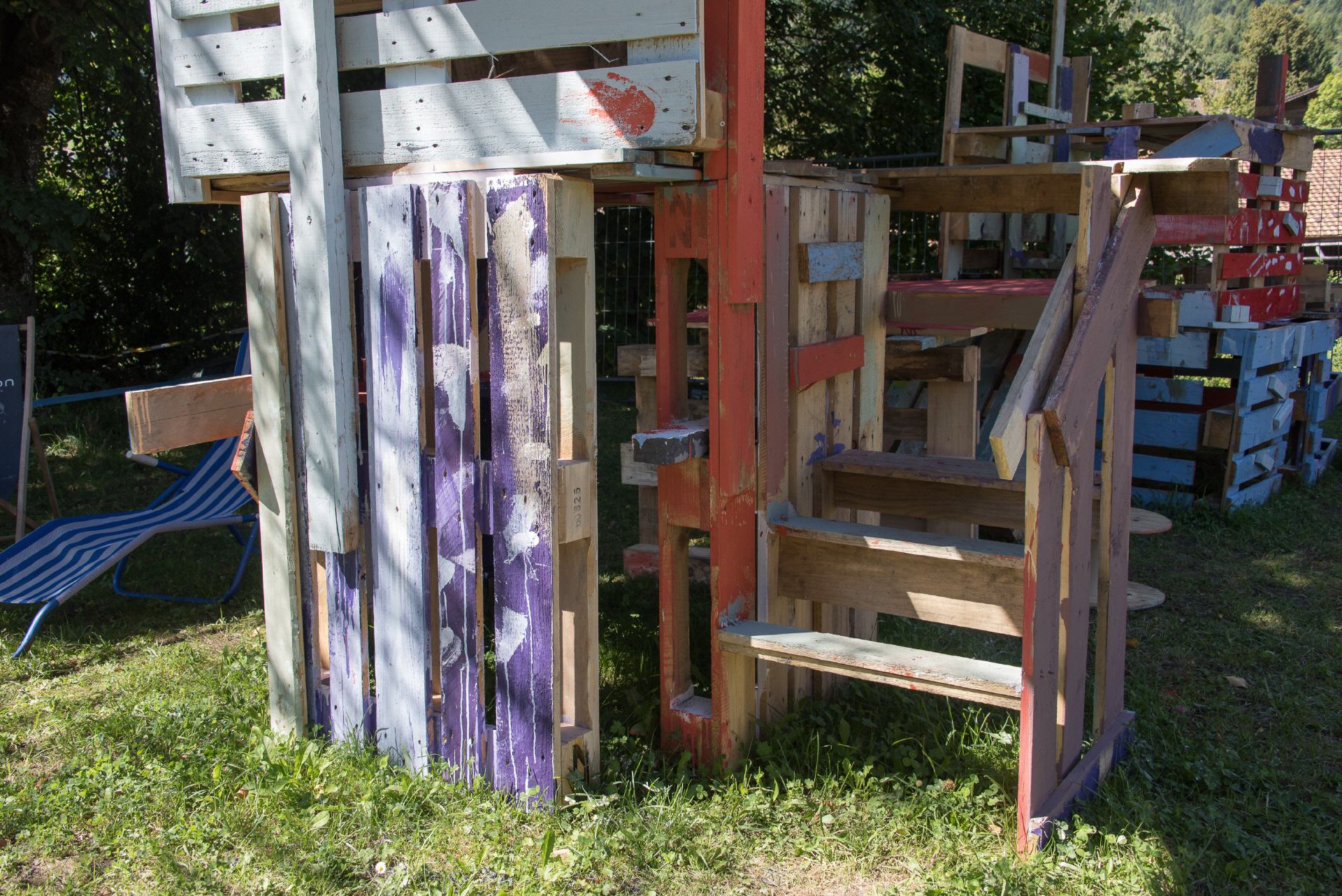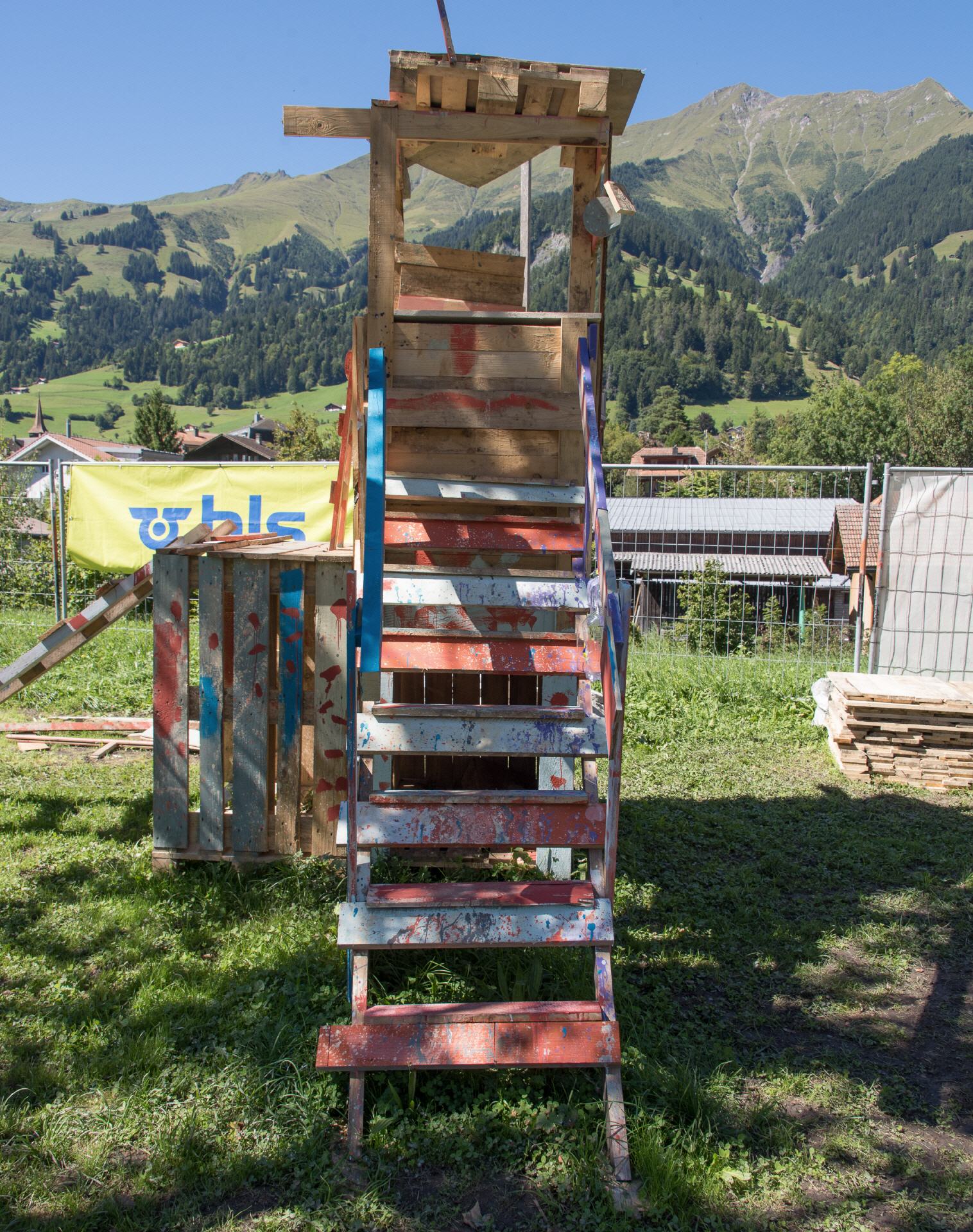 Seit 5 Jahren betreibt die OKJA Niesen (Offene Kinder- und JugendArbeit) während der Sommermonate eine Kinderbaustelle. Auf diesem Areal können Kinder kleine und grosse Häuser und sonstige 'Bauten' zusammenbauen. Teilweise sind aus den fantasiereichen Konstrukten wahre Festungen geworden. Mit Holz, Schrauben, Akkuschraubern und anderen Werkzeugen ausgerüstet, können die Kinder und erwachsenen Begleiter ihrer Fantasie freien Lauf lassen. Einzig die Sicherheit der Anwesenden entscheidet über die Machbarkeit. Mit Pinsel und Farbe wird den Werken der finale Touch verabreicht.