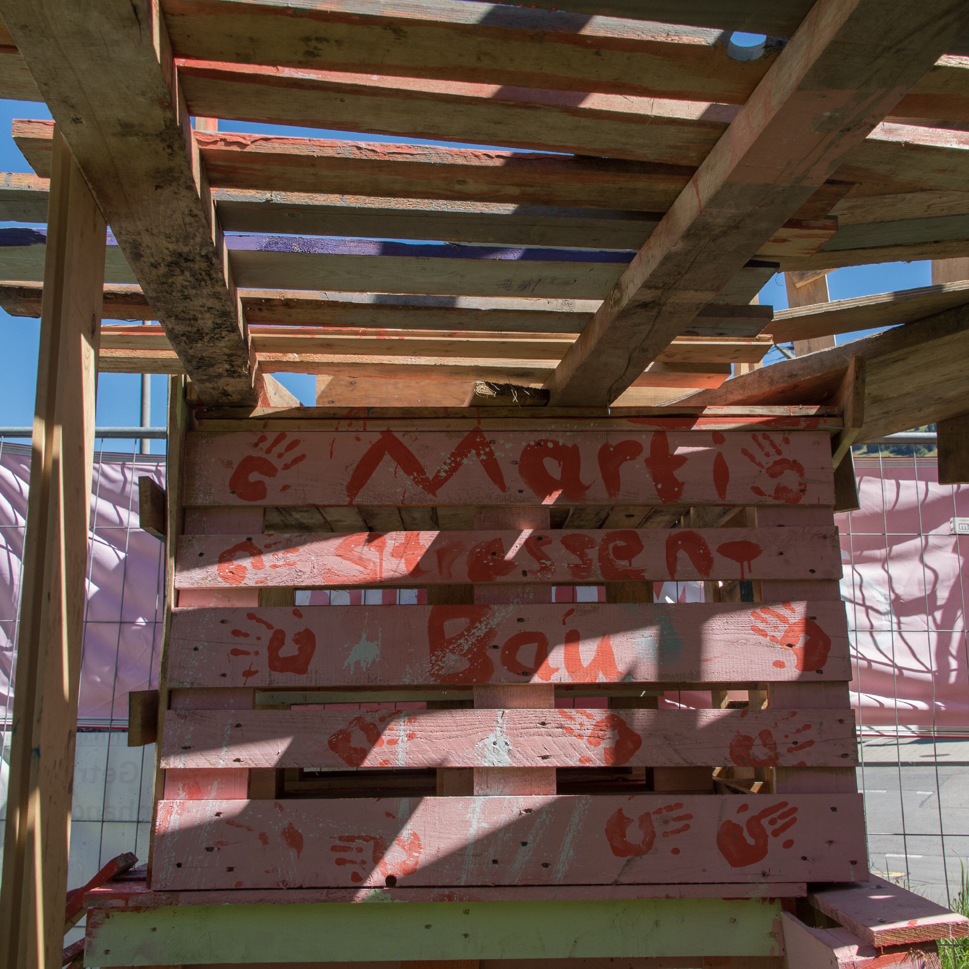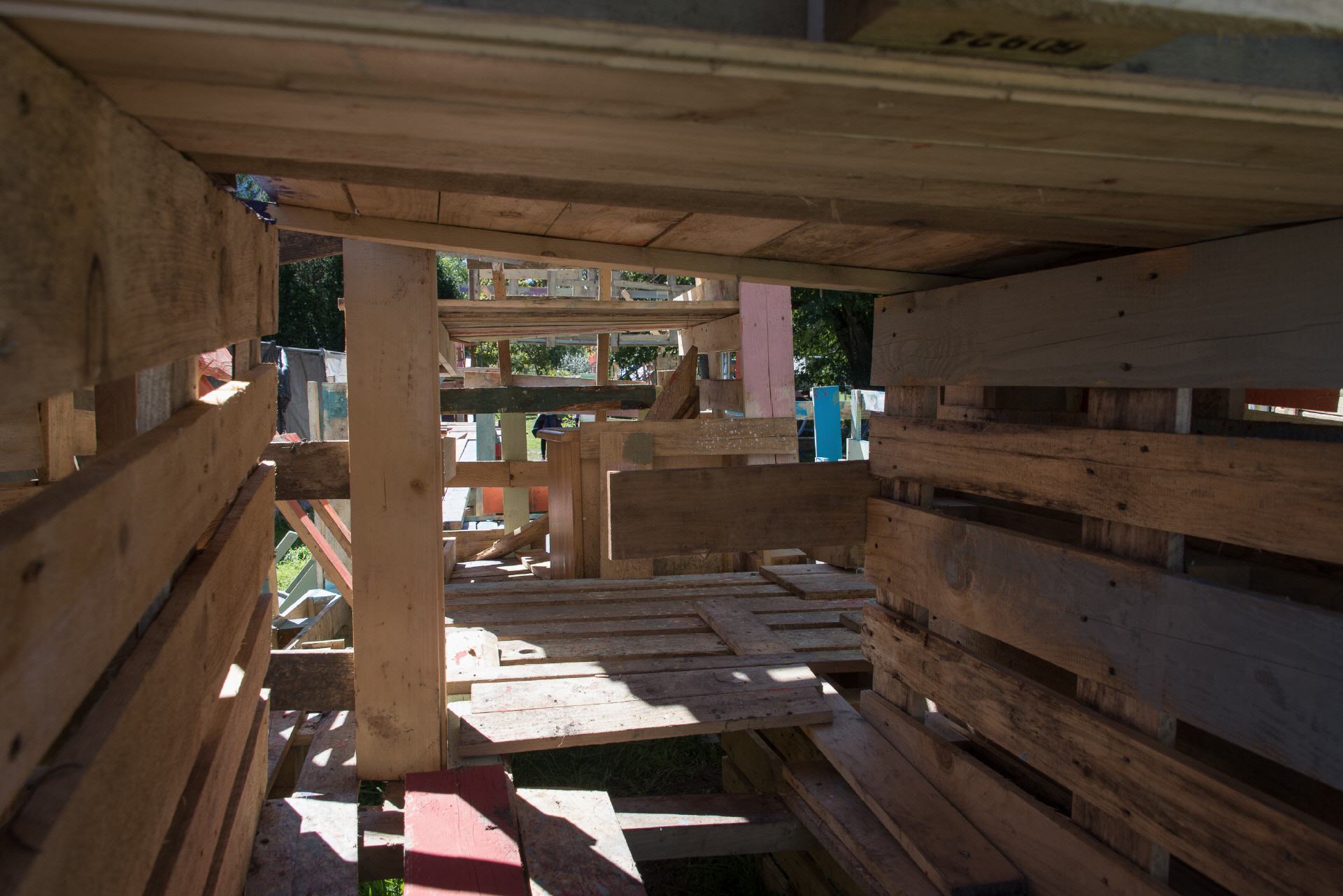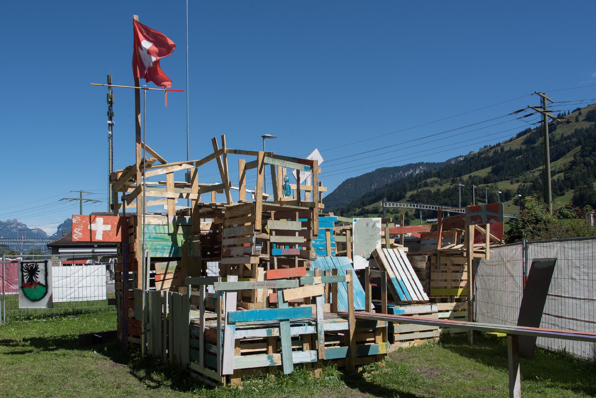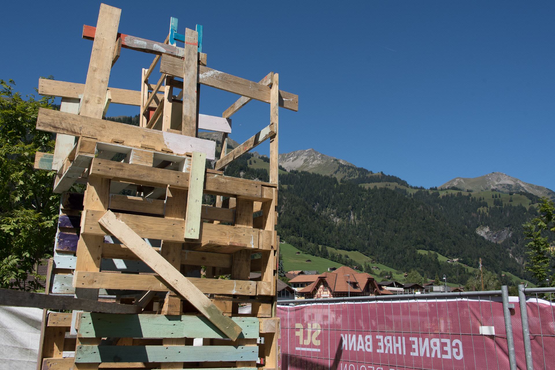 An manchen Nachmittagen sind auf dem Areal der BLS beim Bahnhof Frutigen gut und gerne 100+ Personen vor Ort. Spricht man da bereits von einer Grossbaustelle? Und: Es sind bereits über 100 Paletten verbaut. Diese eignen sich vorzüglich für ein solides Fundament und starke 'Mauern'.