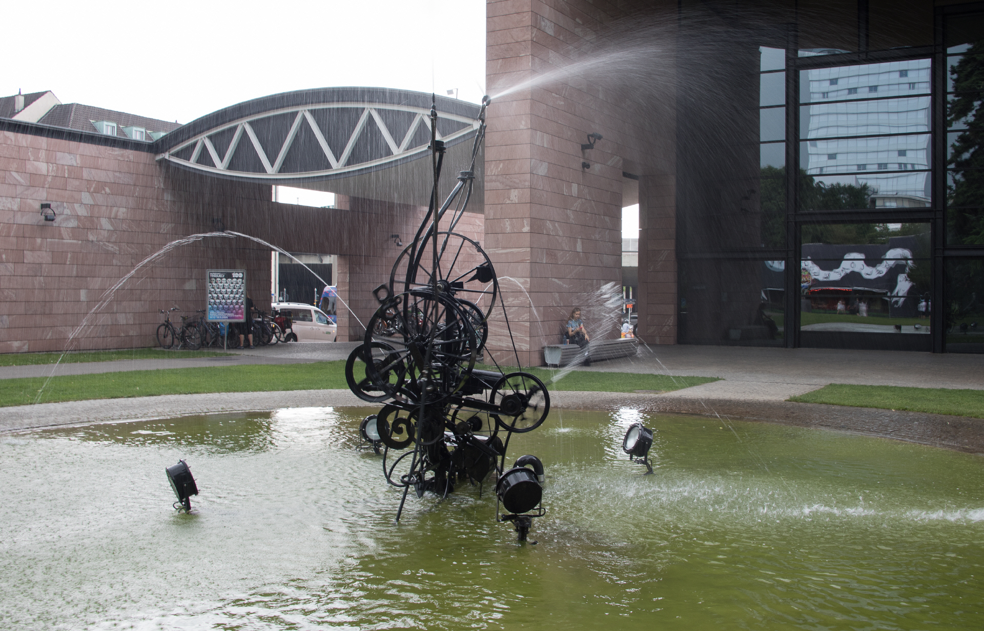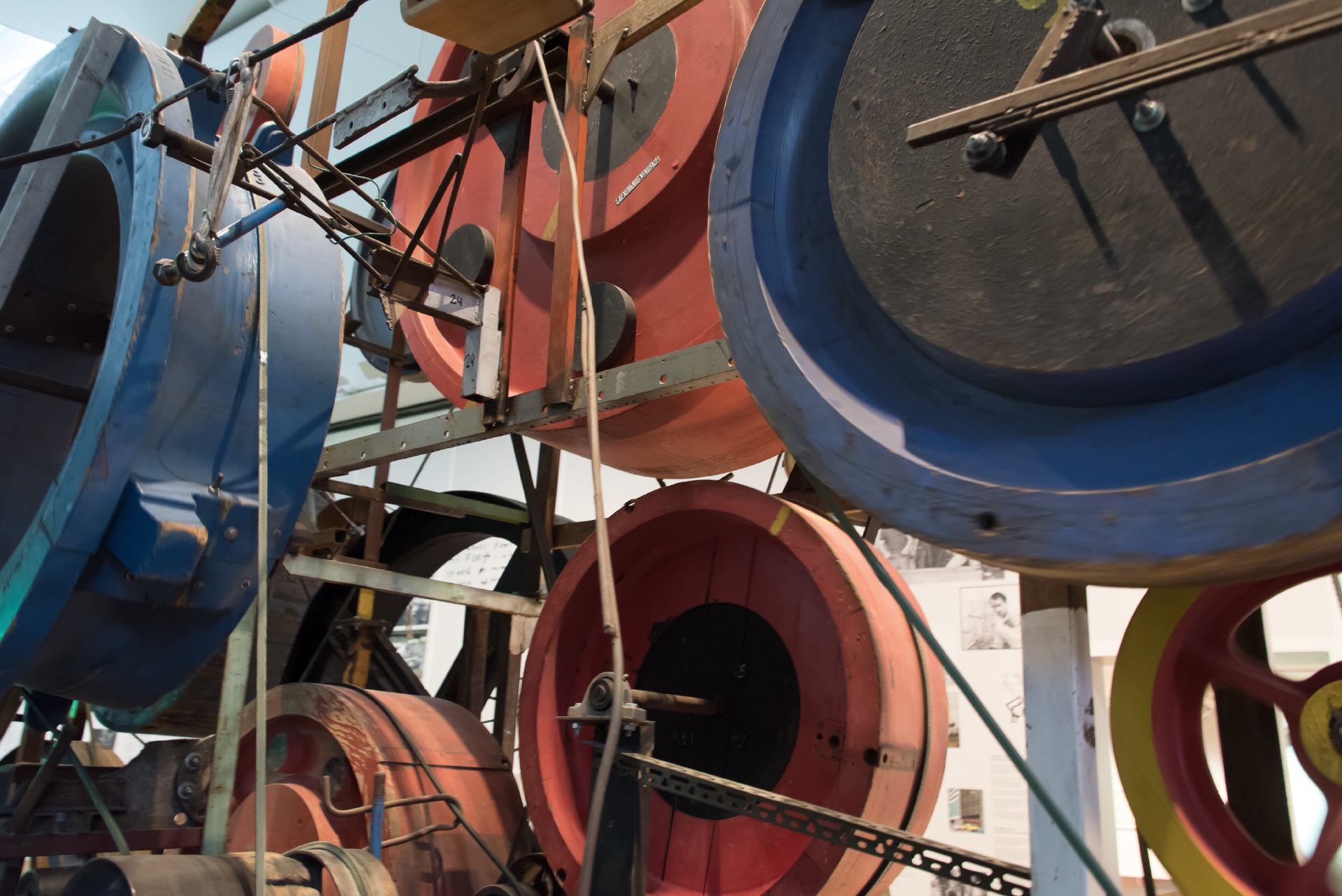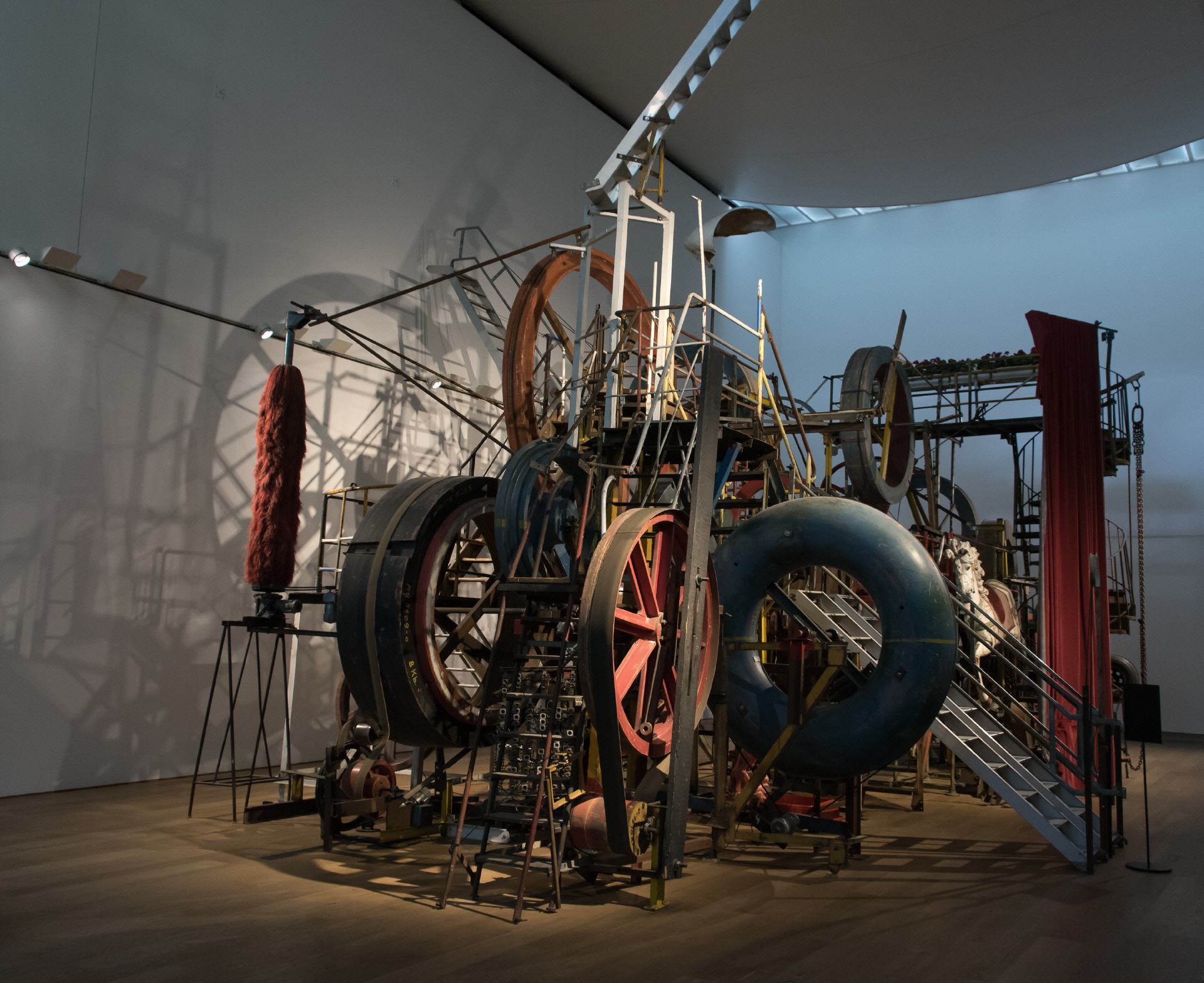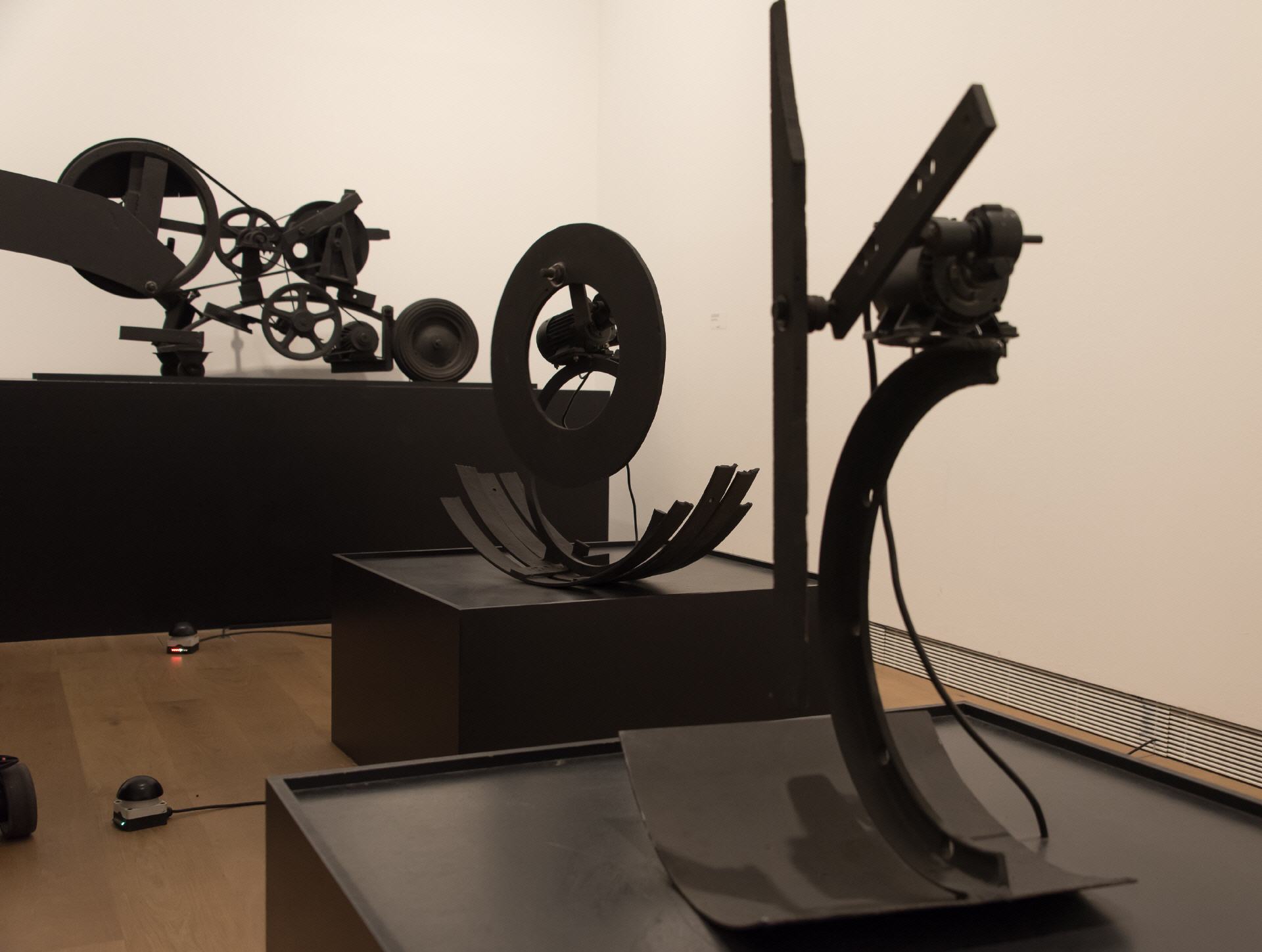 Die teilweise monströsen Installationen faszinieren durch die ineinandergreifenden Elemente. Nebst Rädern, Ketten, Hebeln und Instrumenten ist oft auch Wasser ein wichtiger Teil der Werke. Skuriles ist auch Teil des Schaffens Tinguelys, was auf den ersteren Bildern gut zu sehen ist. Die Beleuchtung der Werke sorgt durch den Schattenwurf für spannende Projektionen an den Museumswänden.