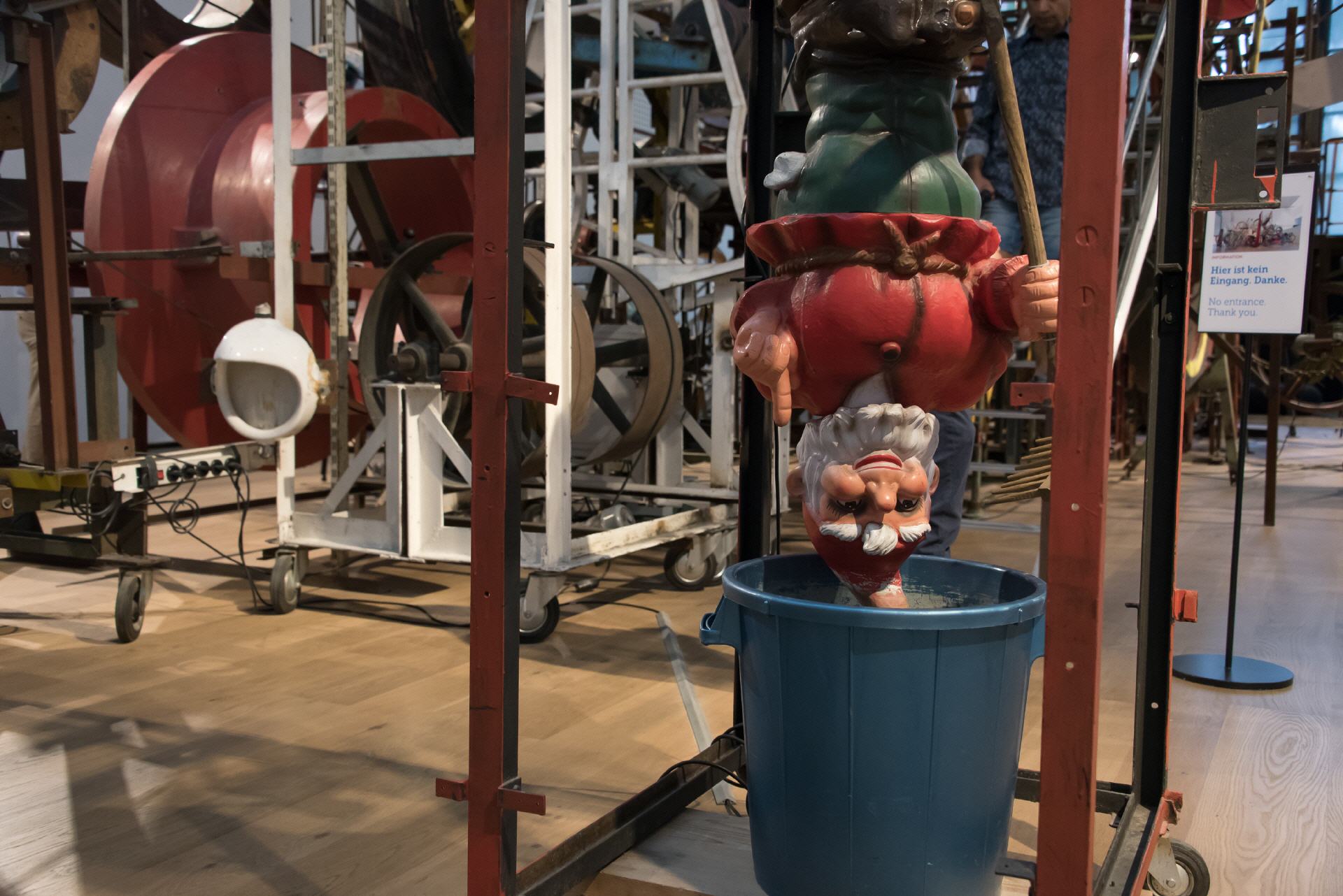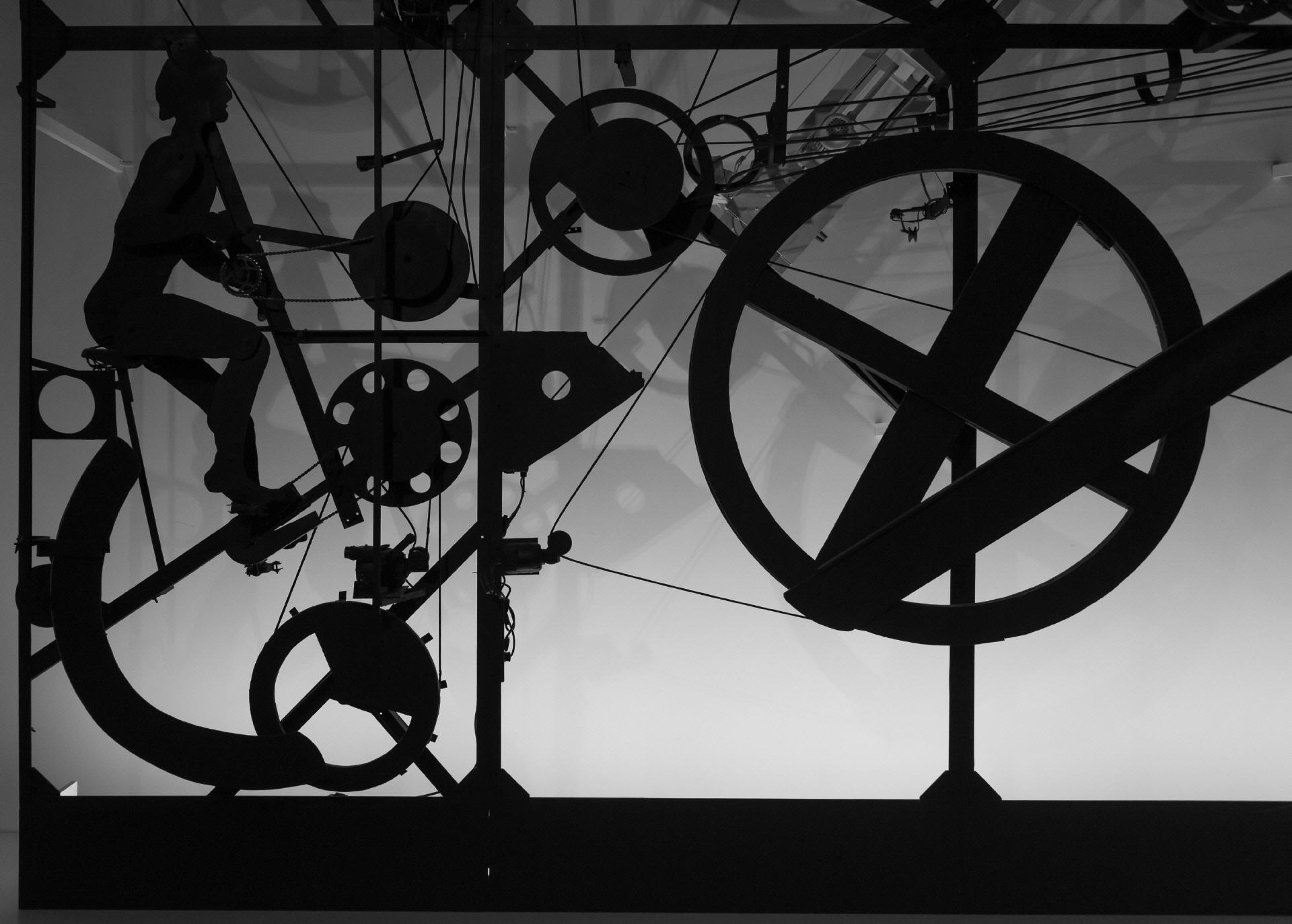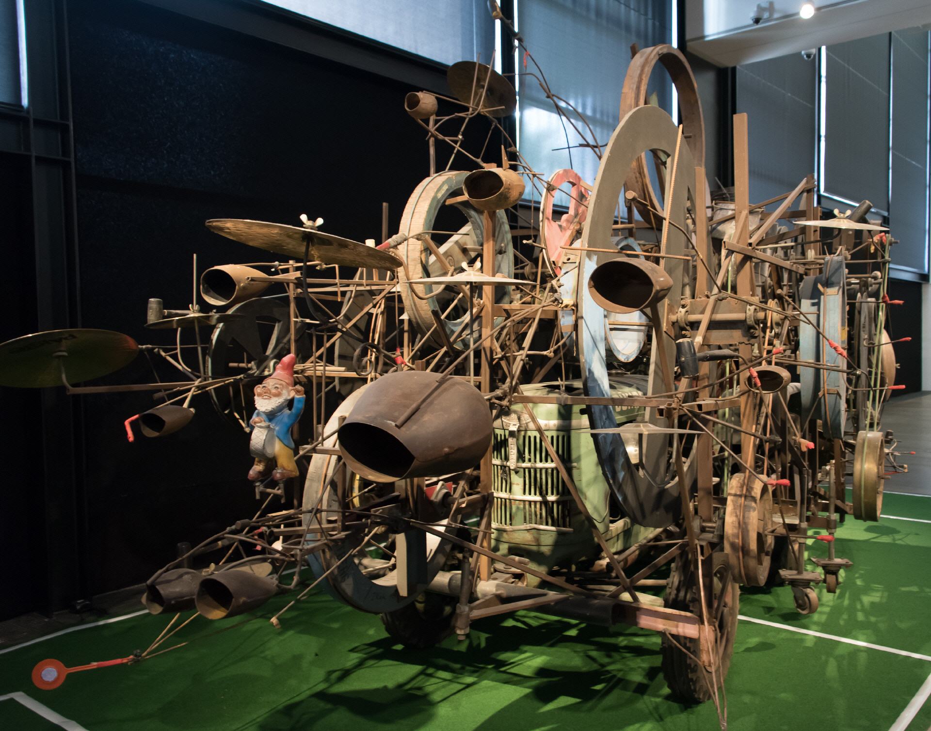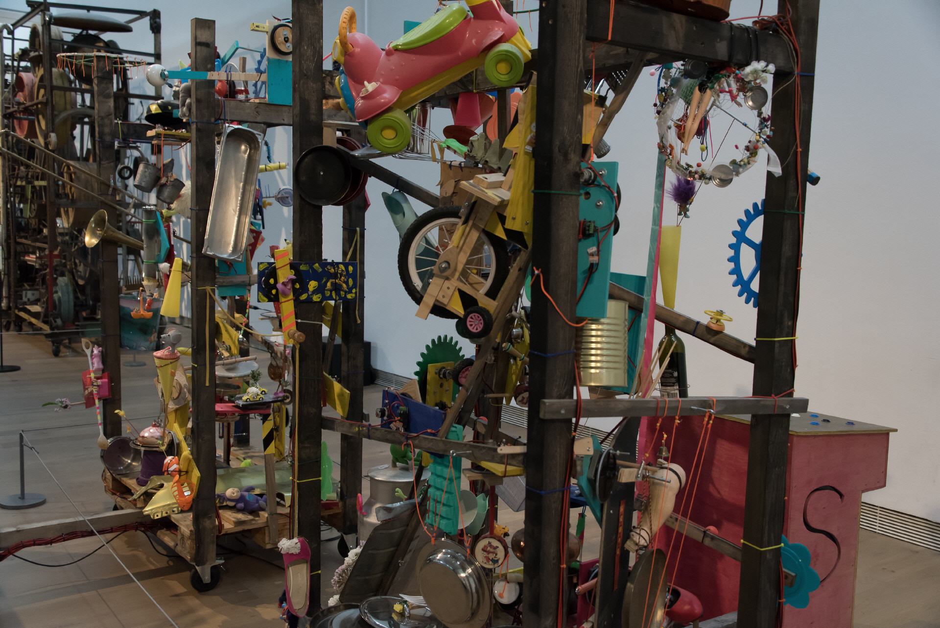 Die teilweise monströsen Installationen faszinieren durch die ineinandergreifenden Elemente. Nebst Rädern, Ketten, Hebeln und Instrumenten ist oft auch Wasser ein wichtiger Teil der Werke. Skuriles ist auch Teil des Schaffens Tinguelys, was auf den ersteren Bildern gut zu sehen ist. Die Beleuchtung der Werke sorgt durch den Schattenwurf für spannende Projektionen an den Museumswänden.