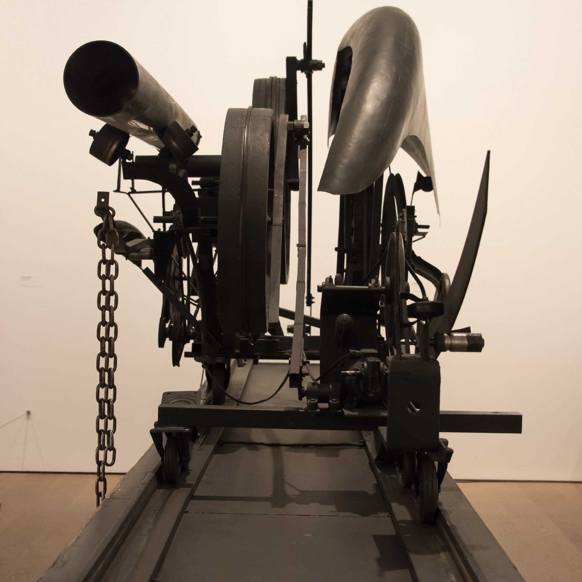Mit seinen kinetischen Kunstwerken zählt Jean Tinguely (2025 - 1991) zu den wichtigen Wegbereitern der Kunst in der zweiten Hälfte des 20. Jahrhunderts. Im Zentrum seines Schaffens stand die Beschäftigung mit der Maschine. Er interessierte sich für die Funktionen von Maschinen, ihre Bewegung, die von ihnen erzeugten Geräusche sowie für die der Maschine inhärente Poesie. (Quelle: https://www.tinguely.ch/de/tinguely-sammlung-restaurierung/tinguely-biographie.html).